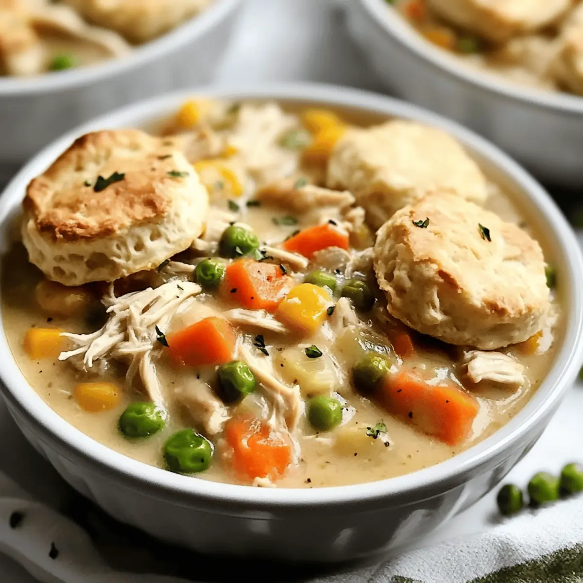 These Slow Cooker Chicken Pot Pies are perfect for meal prep enthusiasts! You can chop your vegetables and dice the onion up to 24 hours in advance, storing them in an airtight container in the refrigerator to maintain freshness. Additionally, the chicken can be seasoned and placed in the slow cooker insert, ready to go—just add your vegetables and liquids before cooking. If you plan to prep the entire dish ahead, you can refrigerate the assembled ingredients for up to 3 days; simply add extra cooking time if starting cold. When ready to serve, cook on high for 3-4 hours or low for 5-7 hours, then shred the chicken and stir in the cream before topping with freshly baked biscuits. This approach not only saves time but ensures your family enjoys a delicious, homemade meal with minimal effort.