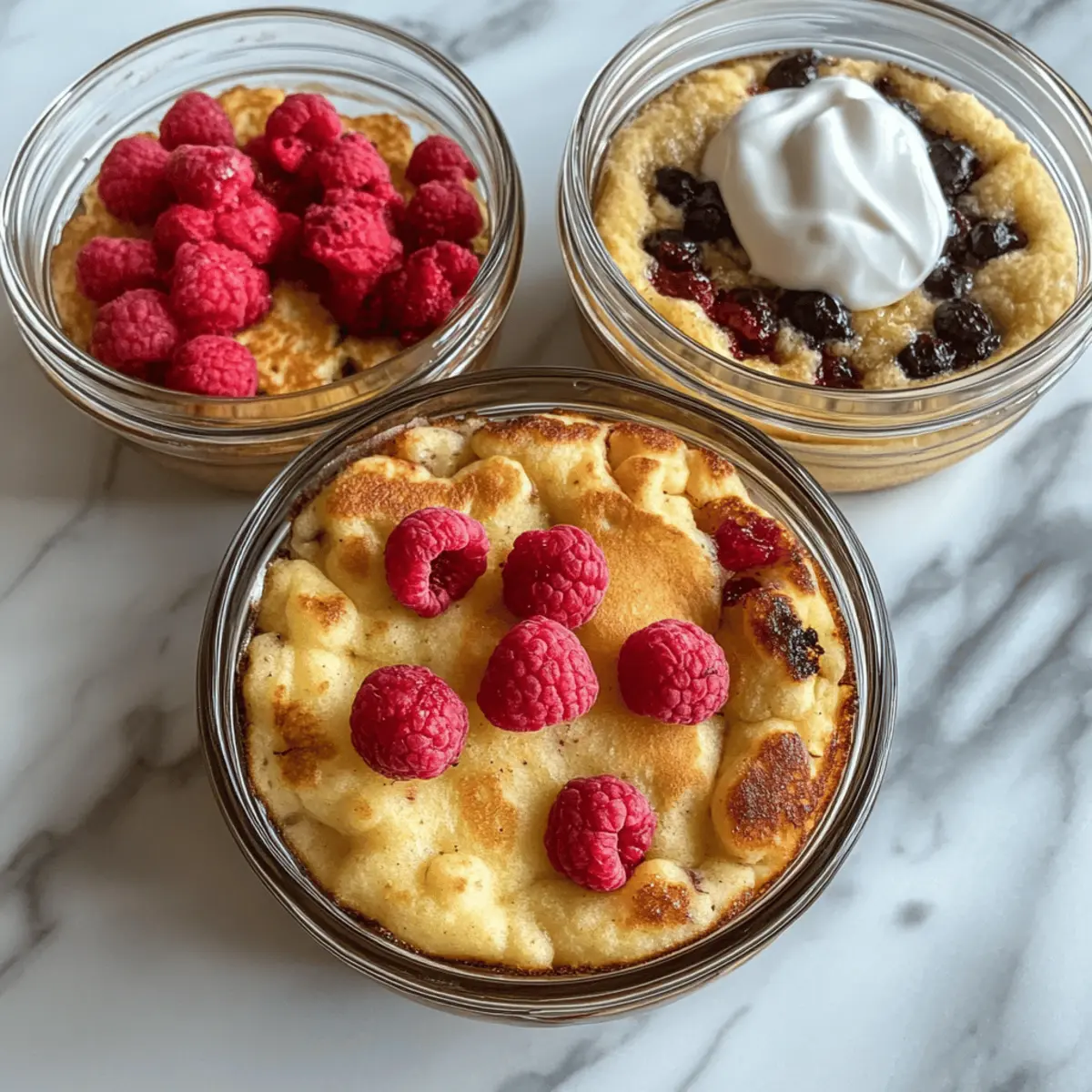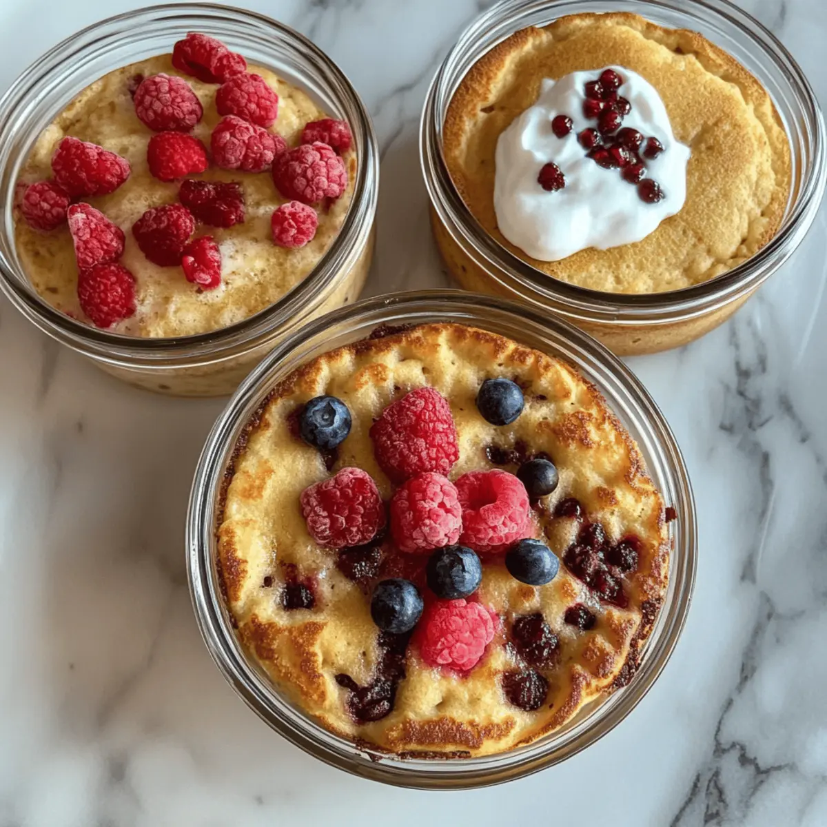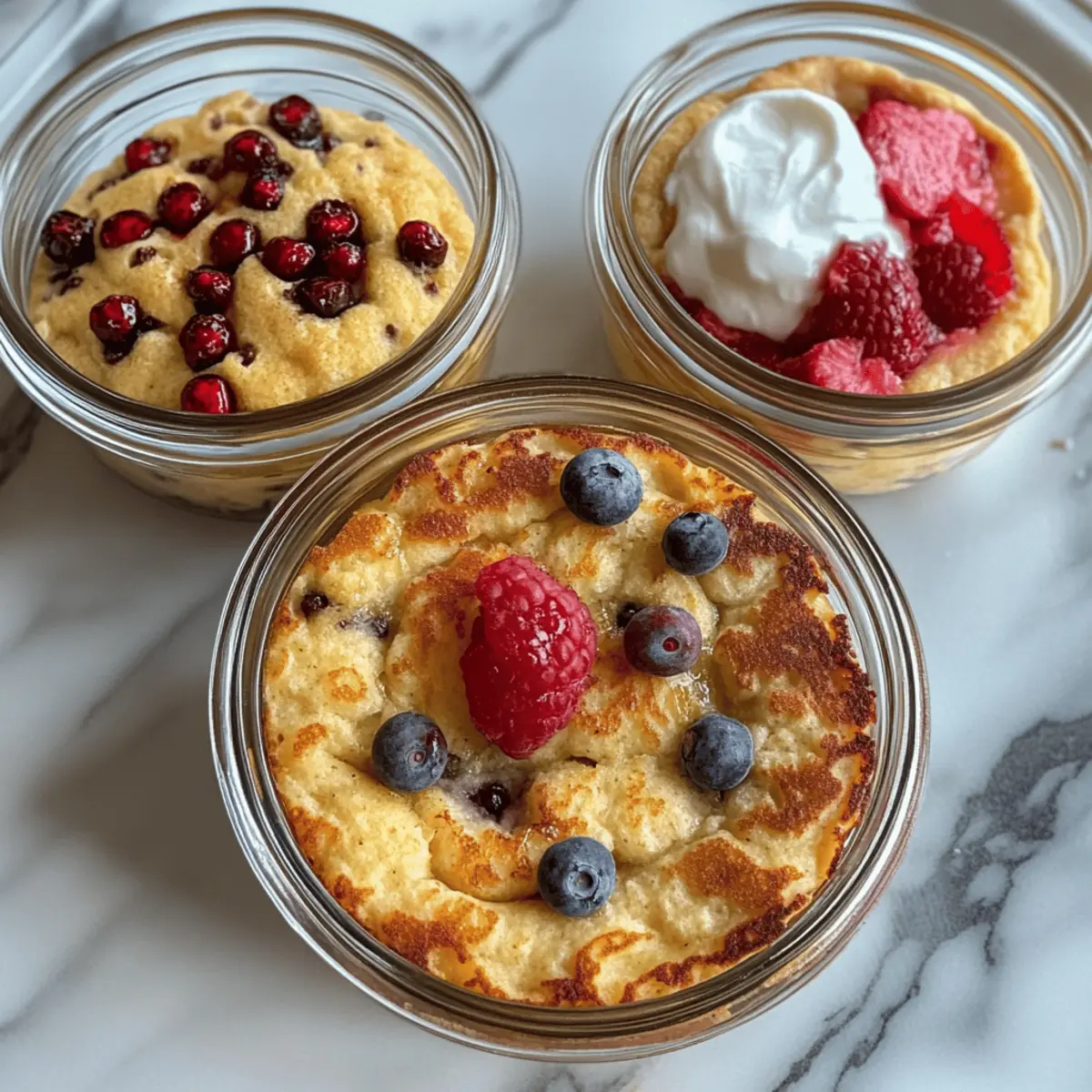 Absolutely! These Baked Protein Pancake Bowls can be tailored to meet various dietary restrictions. For gluten-free options, substitute all-purpose flour with gluten-free flour blends. If you’re concerned about sugar, opt for your favorite low-calorie sweetener, or simply omit it entirely for a lower-sugar approach. Always make sure to check ingredient labels for any potential allergens, especially with protein powders and yogurt.