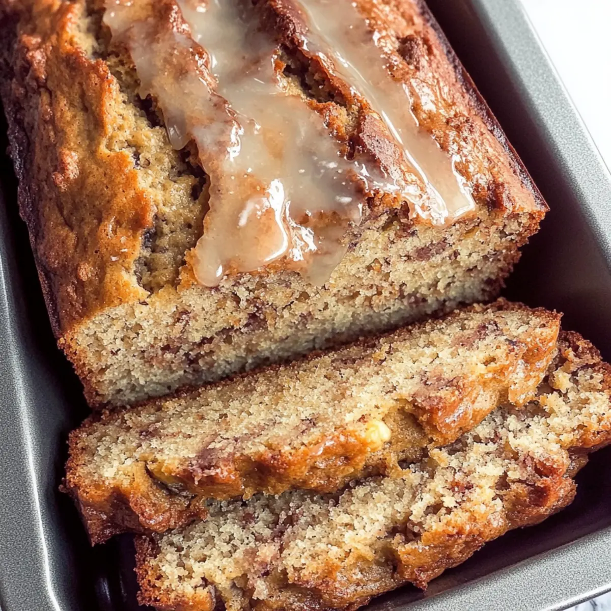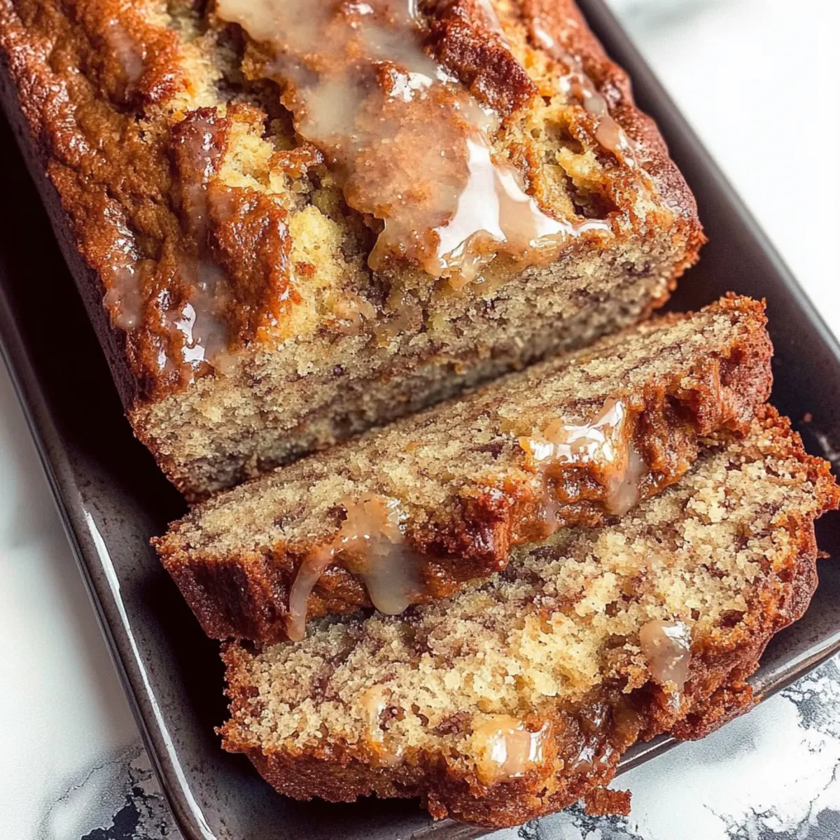 While the banana bread cools completely, prepare a simple glaze by whisking together ¾ cup of powdered sugar and 3 tablespoons of milk. Adjust the milk for your desired consistency. Once your banana bread has cooled fully, drizzle the glaze over the top for added sweetness and a beautiful presentation.