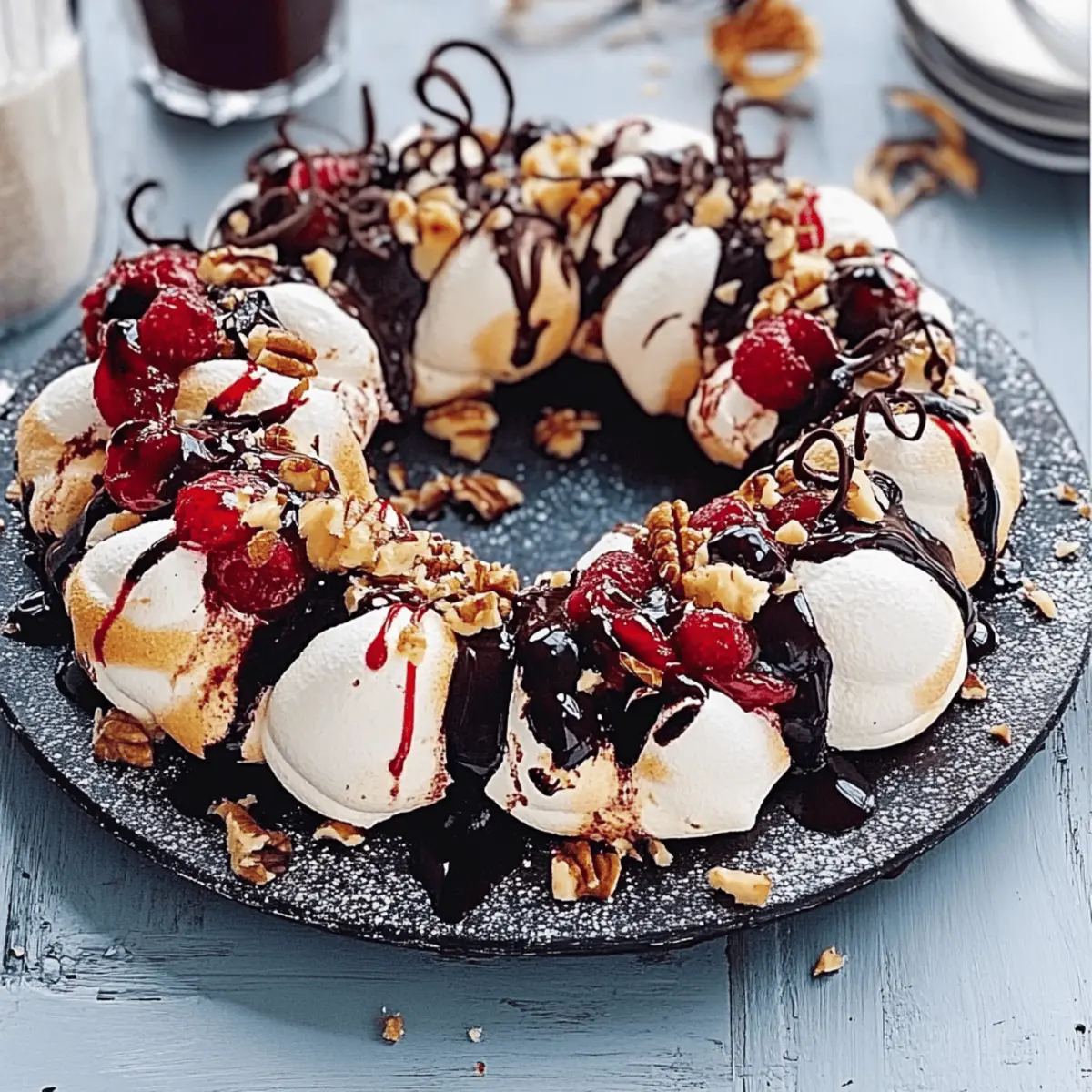 These delightful Black Forest Wreaths are perfect for busy home cooks looking to save time during the festive season! You can prepare the meringue up to 2 days in advance. Simply make it as directed and store the cooled meringue in an airtight container at room temperature to maintain its crispness. The fruity compote can also be made up to 3 days ahead; keep it refrigerated in a sealed jar. When you’re ready to impress your guests, simply assemble the meringue and compote, drizzle with melted dark chocolate, and sprinkle with caramelized nuts just before serving to ensure that every layer remains fresh and delicious! Enjoy the extra time you’ll save in the kitchen!
