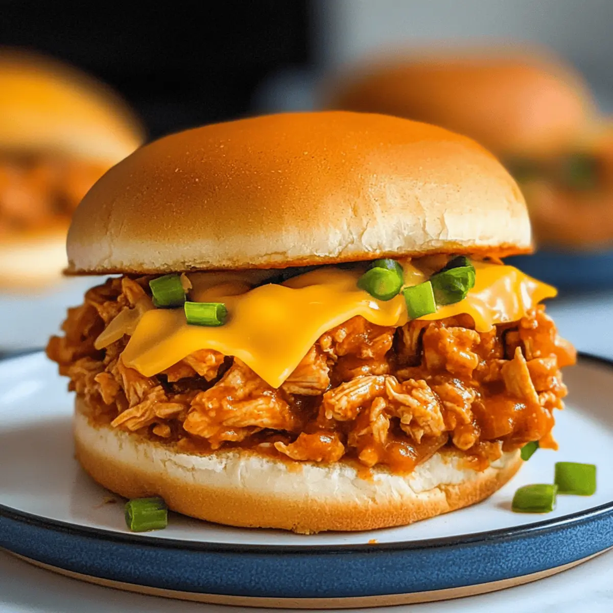 - Spoon generous amounts of the chicken mixture onto the toasted buns, topping with cheese if desired.