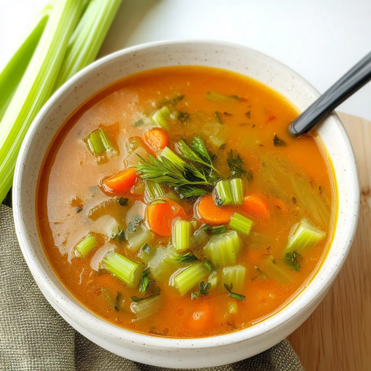 - Once the vegetables are tender, carefully ladle the hot soup into bowls. Optionally, sprinkle finely chopped celery greens or parsley on top.