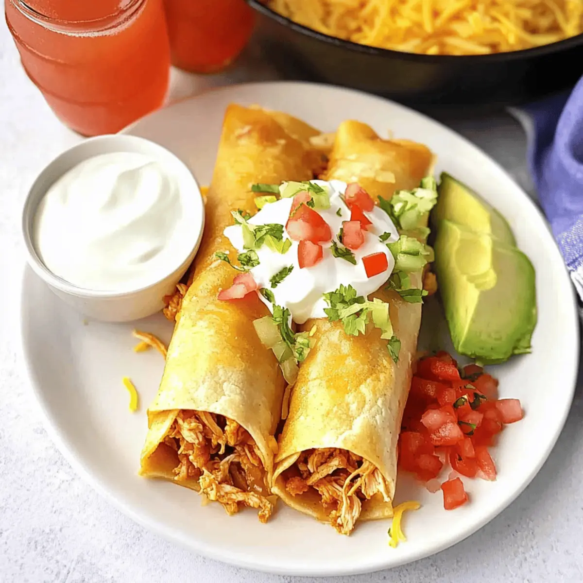 Flavorful Fillings: Mix in black beans or refried beans into your chicken filling for added moisture and flavor. The creaminess of the beans blends beautifully, making every flauta even more satisfying.