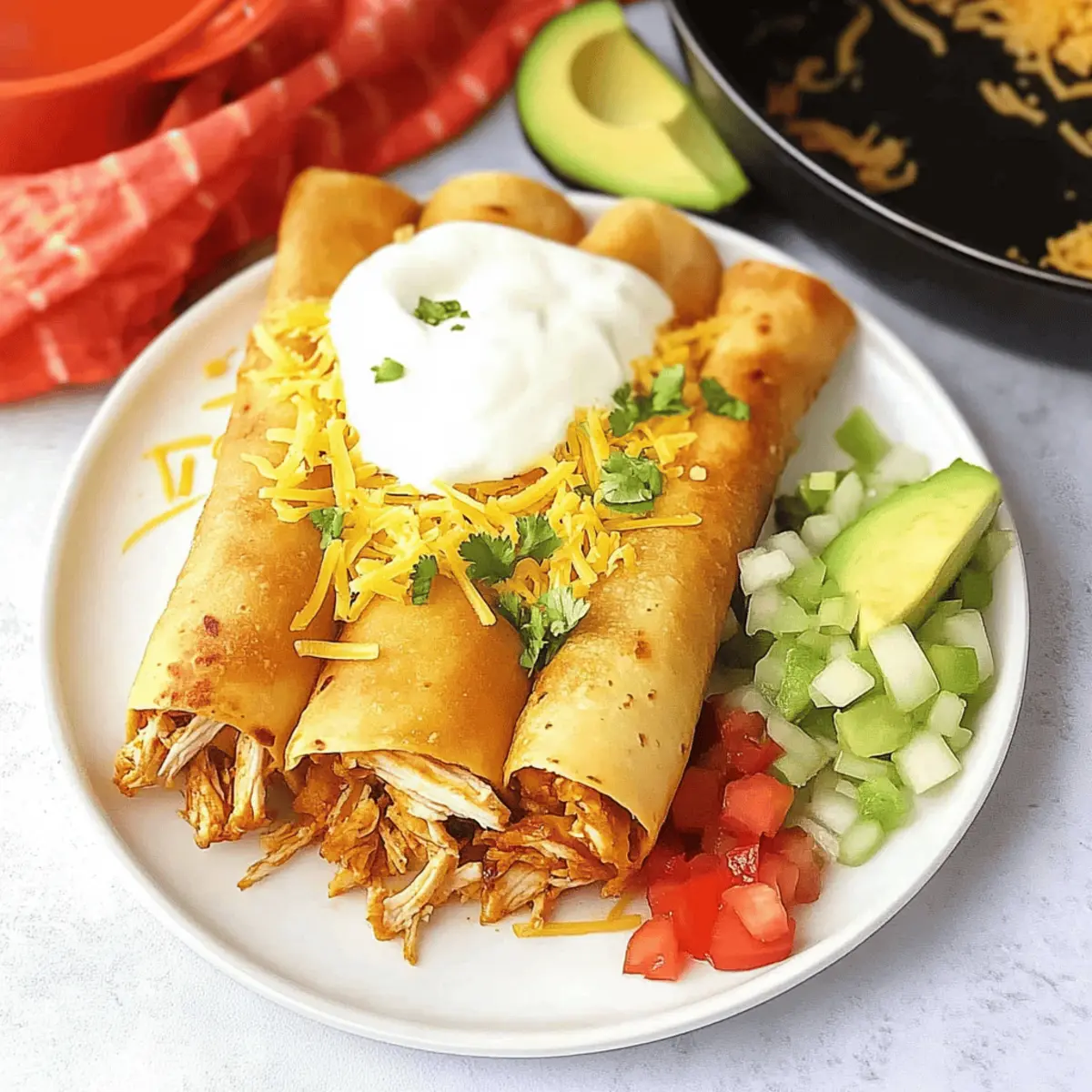 Cheese Variations: Try using Monterey Jack or Pepper Jack cheese instead of cheddar for a spicy kick and creaminess. The right cheese can elevate your flautas and bring a unique flavor burst to each bite!