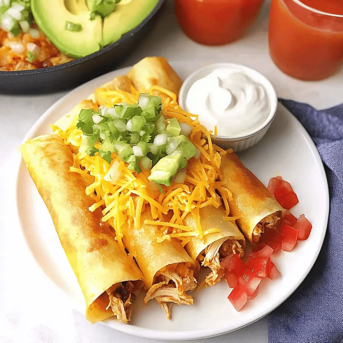 As I stared at the heap of leftover chicken, an idea sparked—why not transform it into something crispy and irresistible? That’s how my One-Pan Chicken Flautas came to life, a dish that packs all the comforting flavors of Mexican cuisine into a simple, no-fuss preparation. Not only are these flautas delightfully crispy, but they also promise a quick meal solution for those busy weeknights or last-minute get-togethers with friends. Imagine the excitement as these golden delights hit the table, ready to be topped with sour cream and fresh pico de gallo! Join me in creating these flavorful treasures, and discover how easy it can be to elevate home cooking without the fuss. What unique twists will you add to your flautas?