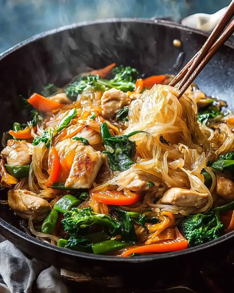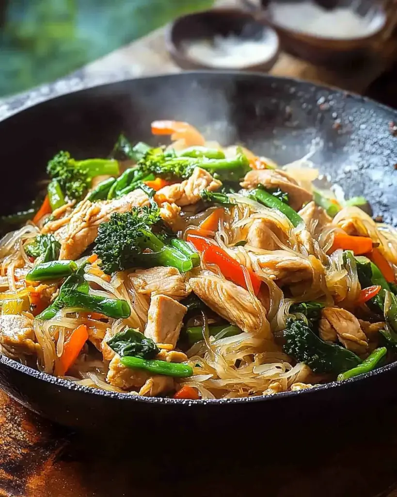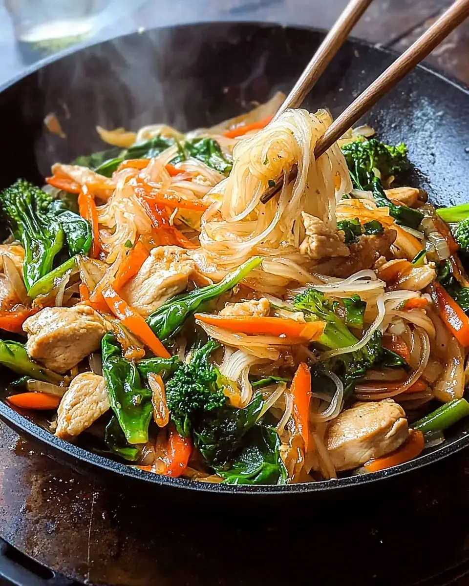 Cooking this Chicken Stir-Fry with Rice Noodles is more than just preparing a meal; it’s about creating a moment of joy in your kitchen. The vibrant colors, enticing aromas, and satisfying flavors come together to make a dish that feels special, even on a busy weeknight. Each bite is a reminder of how simple ingredients can transform into something extraordinary. Whether you’re sharing it with family or enjoying it solo, this recipe brings warmth and comfort. So, roll up your sleeves, embrace the process, and let this stir-fry become a cherished part of your culinary repertoire!