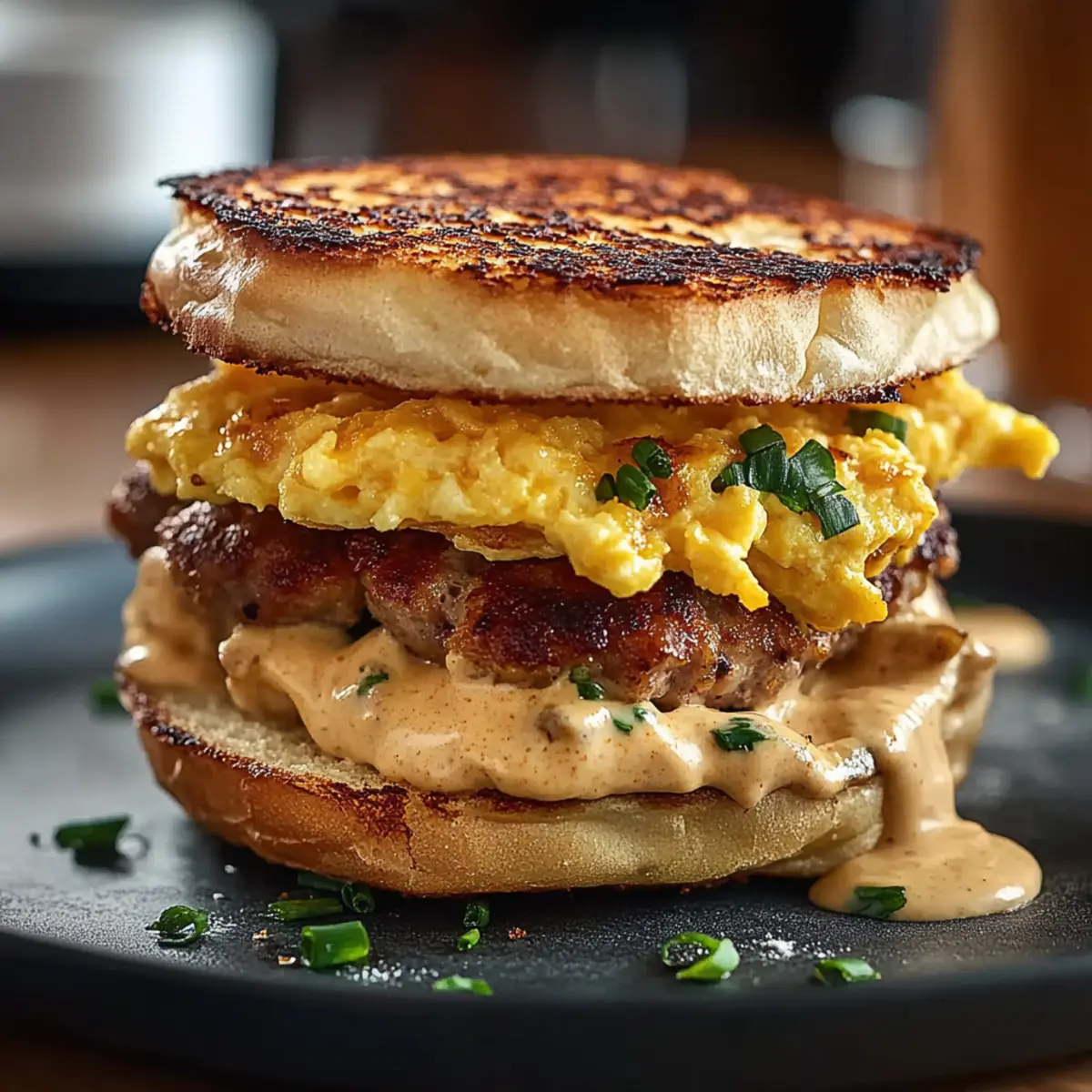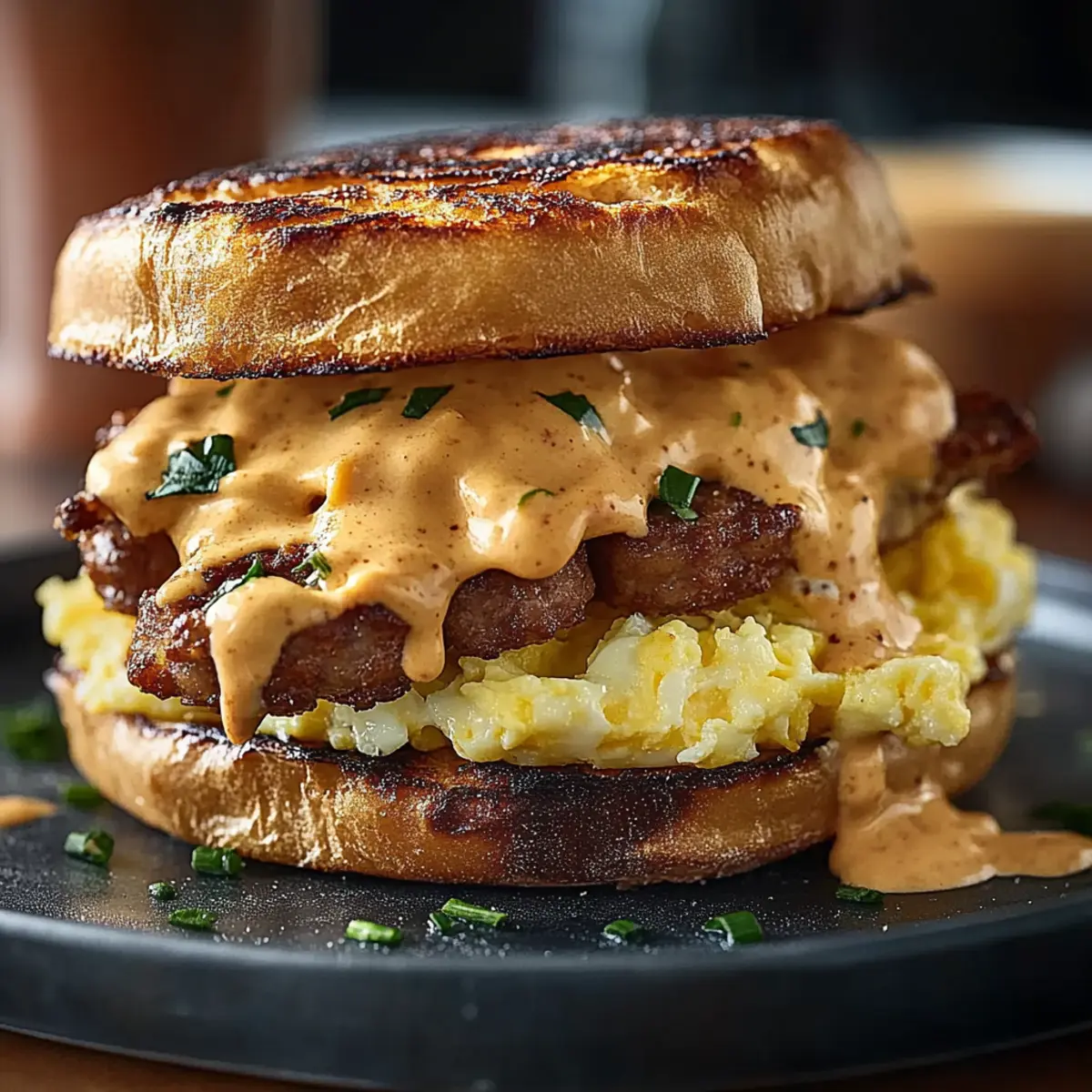 Breakfast Burrito: Transform this sandwich into a breakfast burrito! Wrap the scrambled eggs, sausage, and aioli in a tortilla for a portable option. It’s perfect for busy mornings or on-the-go breakfasts.