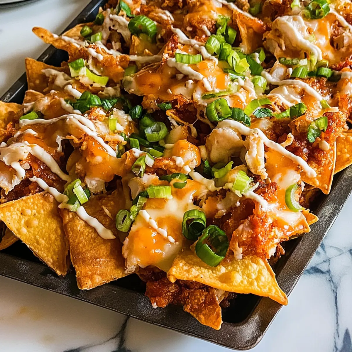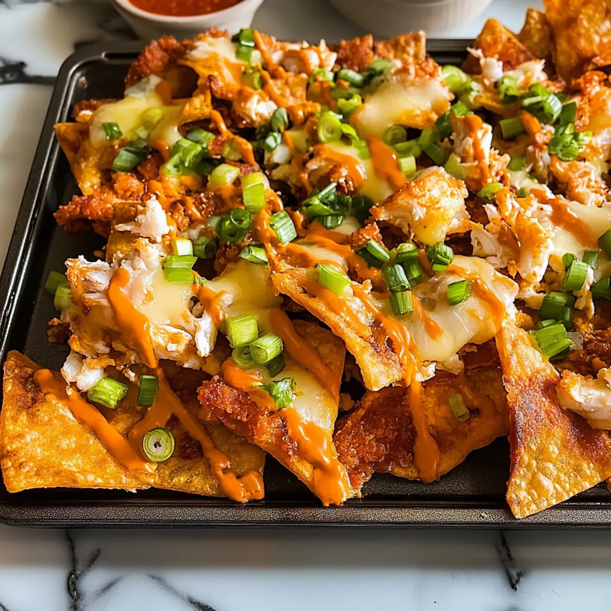 Eye-catching Presentation: The vibrant colors of green onions and the glossy drizzle of Thai chili sauce make these nachos not only delicious but visually stunning—sure to impress your guests!