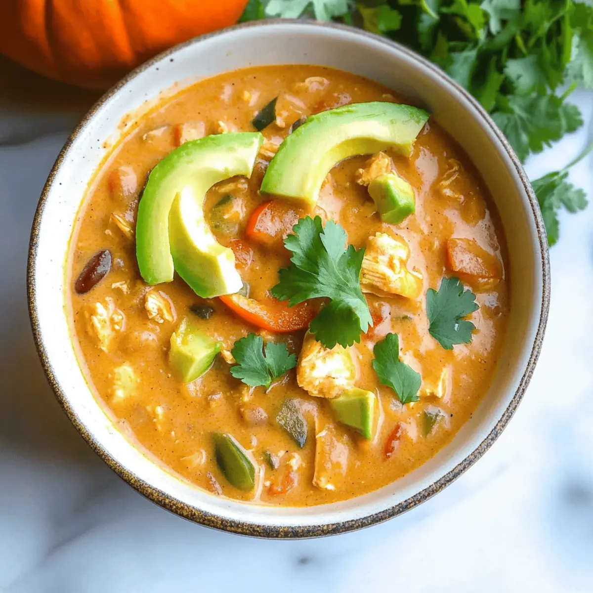 These Creamy Pumpkin Chicken Chili options are perfect for meal prep enthusiasts! You can chop your vegetables and sear the chicken up to 24 hours in advance, storing them separately in airtight containers in the refrigerator to maintain freshness. Alternatively, assemble the entire chili without the coconut milk (or cream cheese) and refrigerate it for up to 3 days. Just remember to reheat gently on the stovetop, adding a splash of broth if necessary to keep the consistency creamy. When you’re ready to serve, quickly stir in the coconut milk for that final touch of richness, ensuring your warm chili is just as delicious as when freshly made.