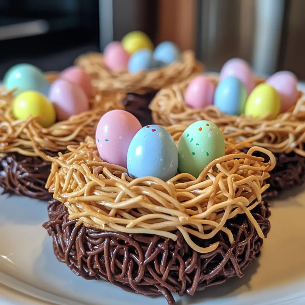 Neat Nest Design: Use a piping bag to carefully drizzle melted chocolate for a more polished nest look.
