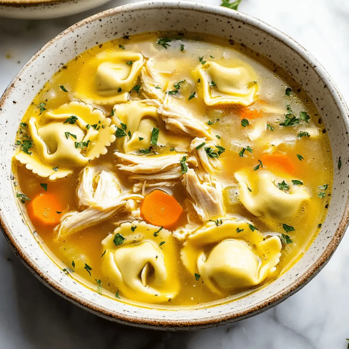 Comforting Flavors: A blend of shredded chicken and cheesy tortellini in a rich broth provides a warm hug in a bowl, ideal for chilly days.