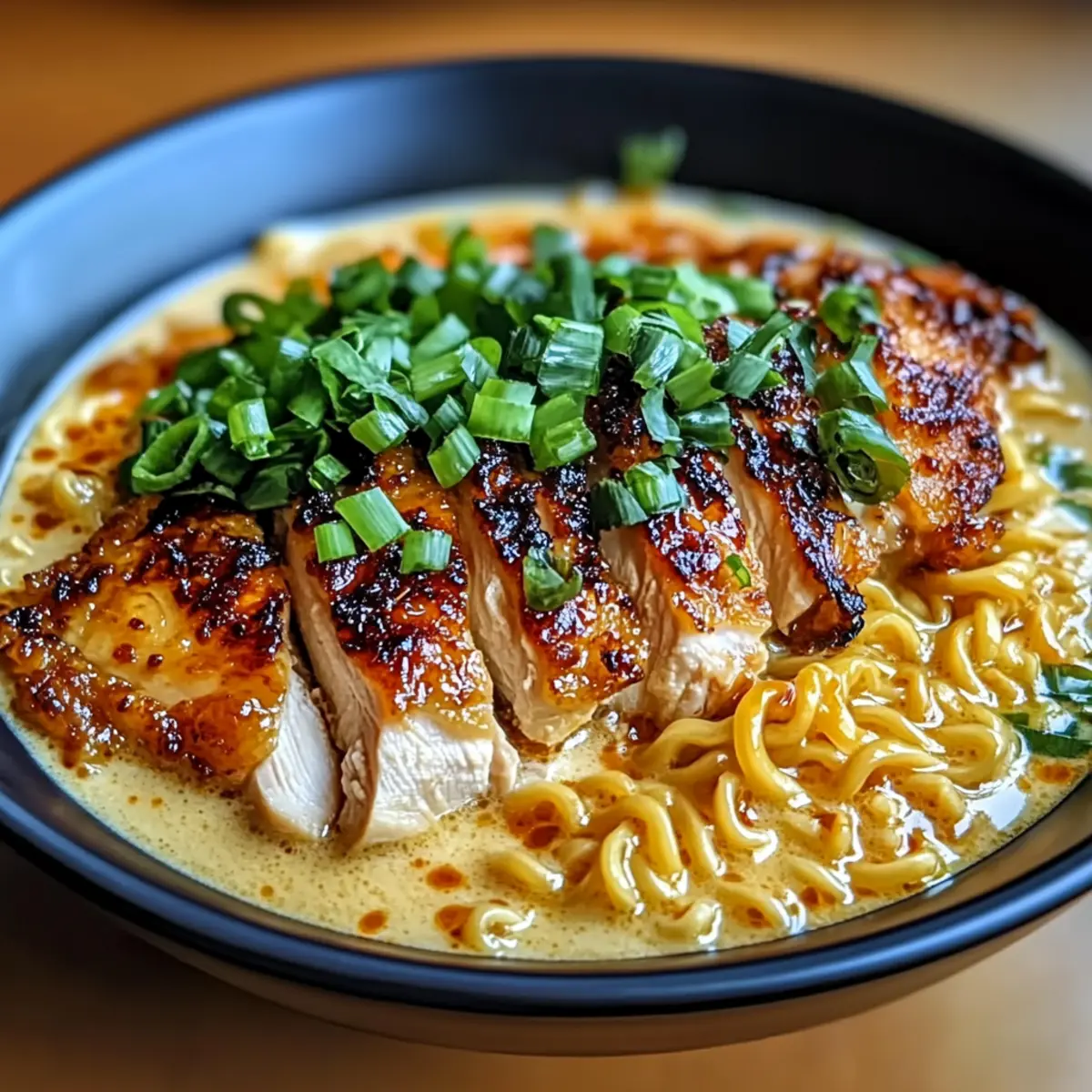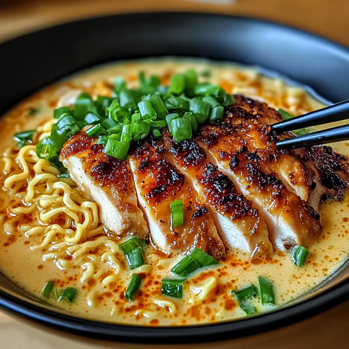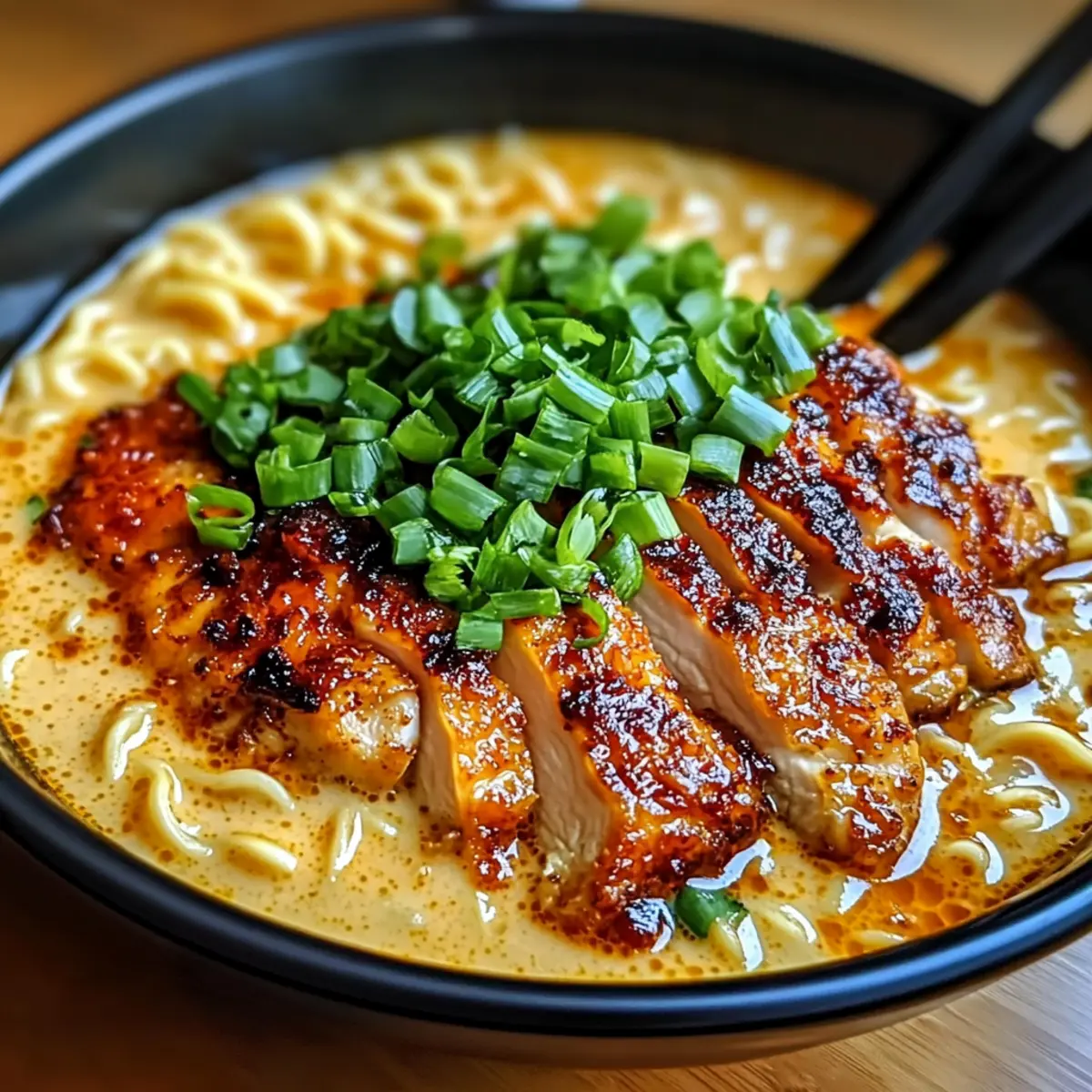 Finally, sprinkle freshly chopped green onions over the top of your bowl for an added crunch and burst of color. Serve your Fiery Chicken Ramen with Creamy Garlic Sauce while hot, allowing everyone to enjoy a comforting bowl of deliciousness that’s sure to warm hearts and bellies alike!