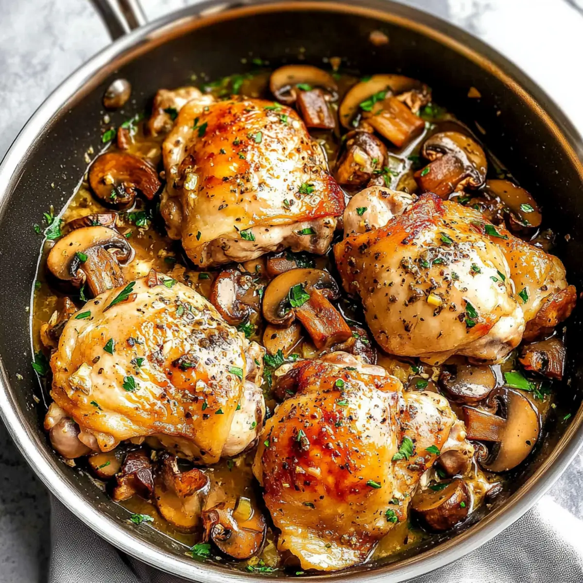 As I stirred the bubbling pot, the aroma of sautéed garlic and earthy mushrooms danced through the air, instantly transporting me to a cozy kitchen in Italy. That’s when I knew—I had to share my latest obsession: Quick Garlic Mushroom Chicken Thighs. This recipe makes weeknight cooking a breeze, combining tender, juicy chicken thighs with a rich mushroom sauce in just one pan, making clean-up just as effortless as the cooking! Not only does it cater to your health-conscious cravings with low-carb options, but it’s also a delightful way to charm your family or impress guests. Curious how this simple dish can elevate your next dinner? Let’s dive into the details!