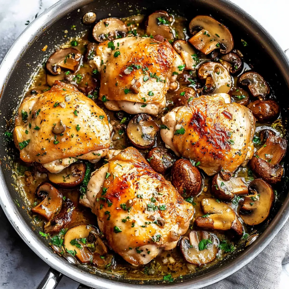 Savor Garlic Mushroom Chicken Thighs in One Delicious Pan