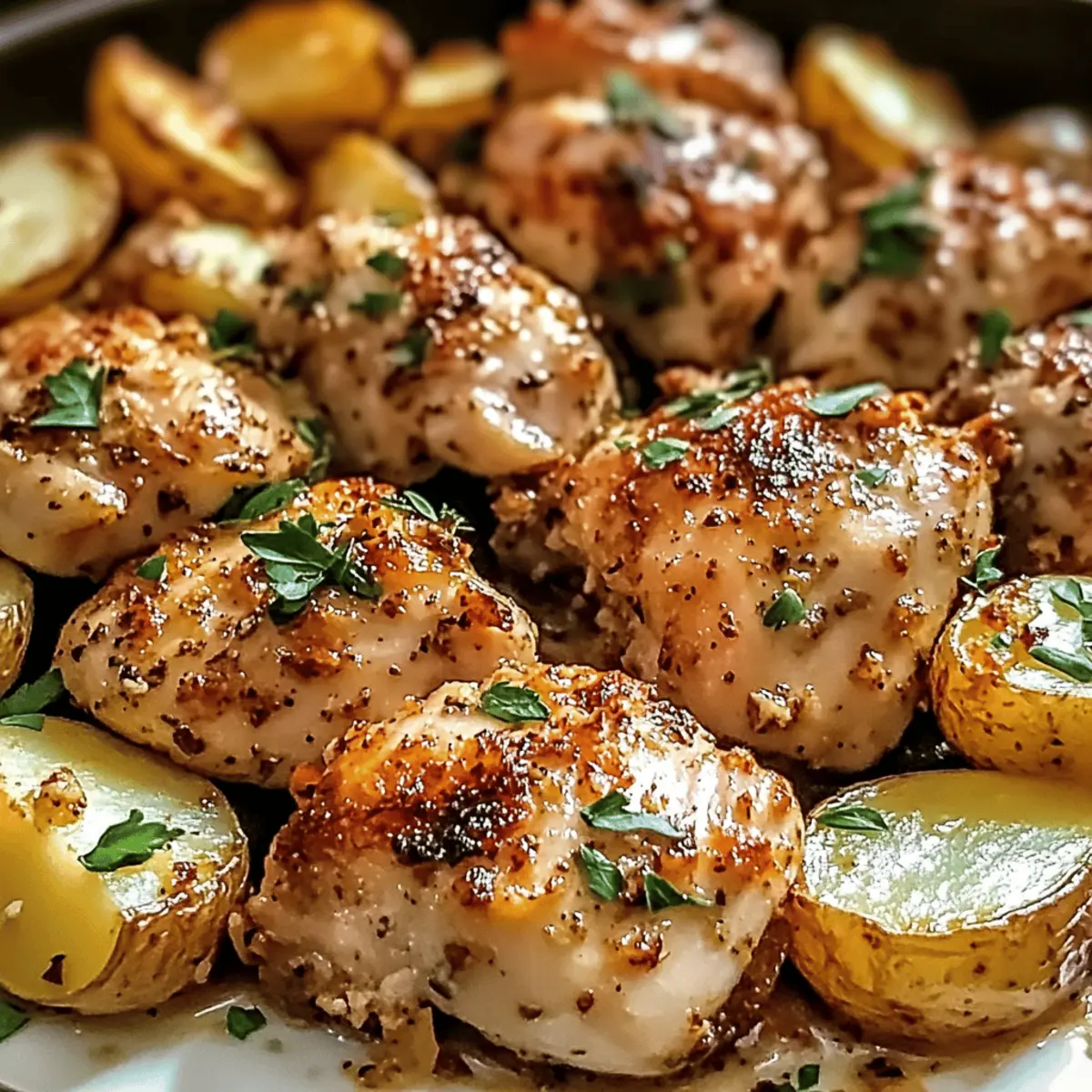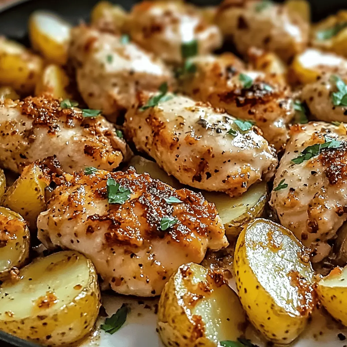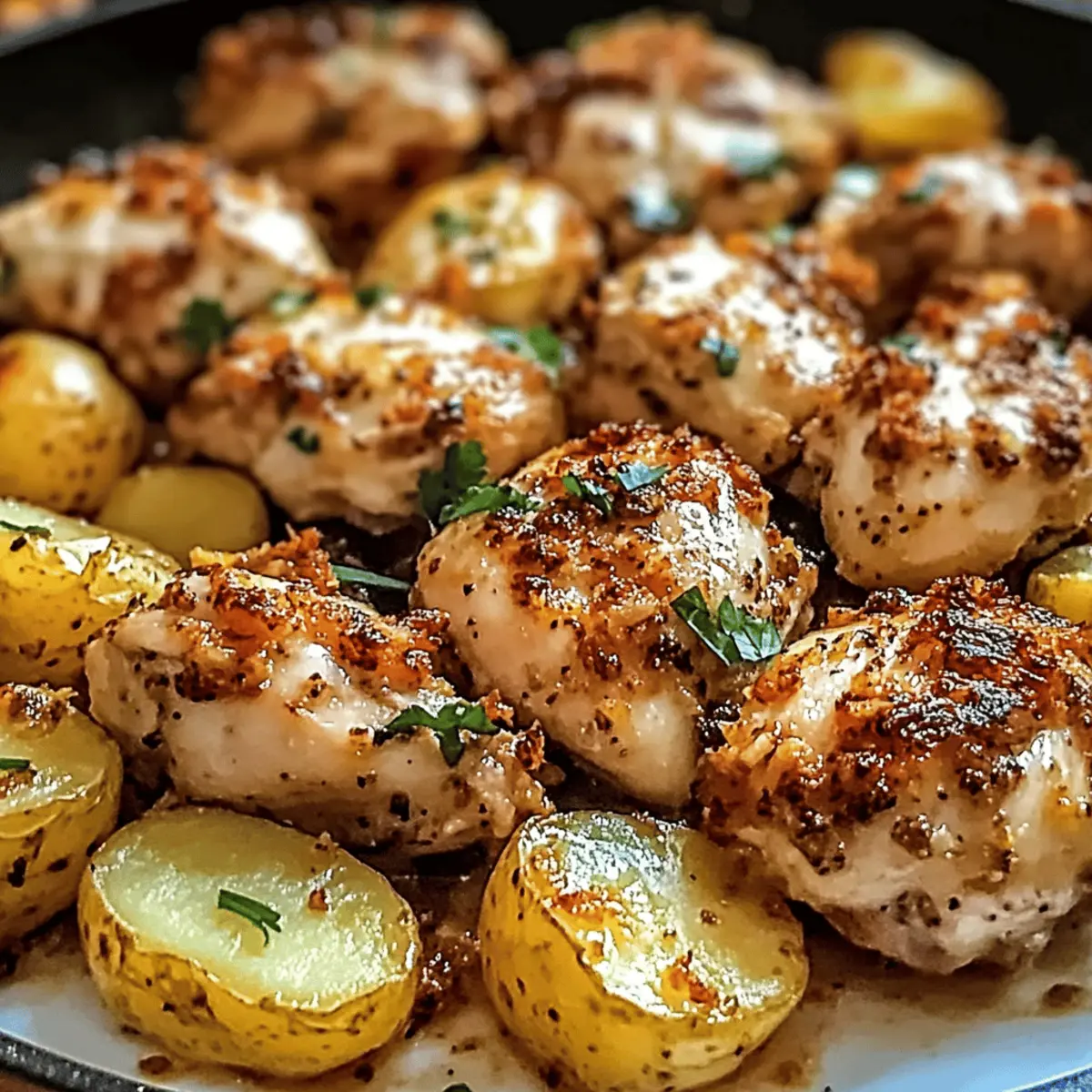 The aroma of garlic, mingling with the rich scent of roasted chicken and crispy potatoes, transports me back to cherished family dinners where comfort reigned supreme. Today, I’m excited to share my favorite recipe for Garlic Parmesan Chicken and Potatoes, a one-pan dinner that transforms busy weeknights into delightful culinary moments. In just 45 minutes, you can serve up succulent chicken paired with perfectly golden potatoes, all while enjoying a minimal cleanup—a true lifesaver in our bustling lives. This dish not only satisfies the craving for comforting flavors but also makes dinner prep a breeze, allowing you to spend more time with loved ones. Are you ready to dive into this savory dish that’s sure to become a staple in your home?