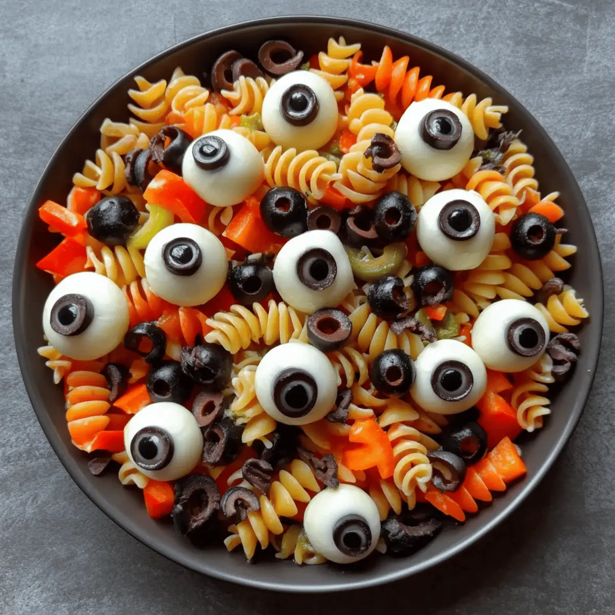 Creepy Halloween Pasta Salad with Mozzarella Eyeballs