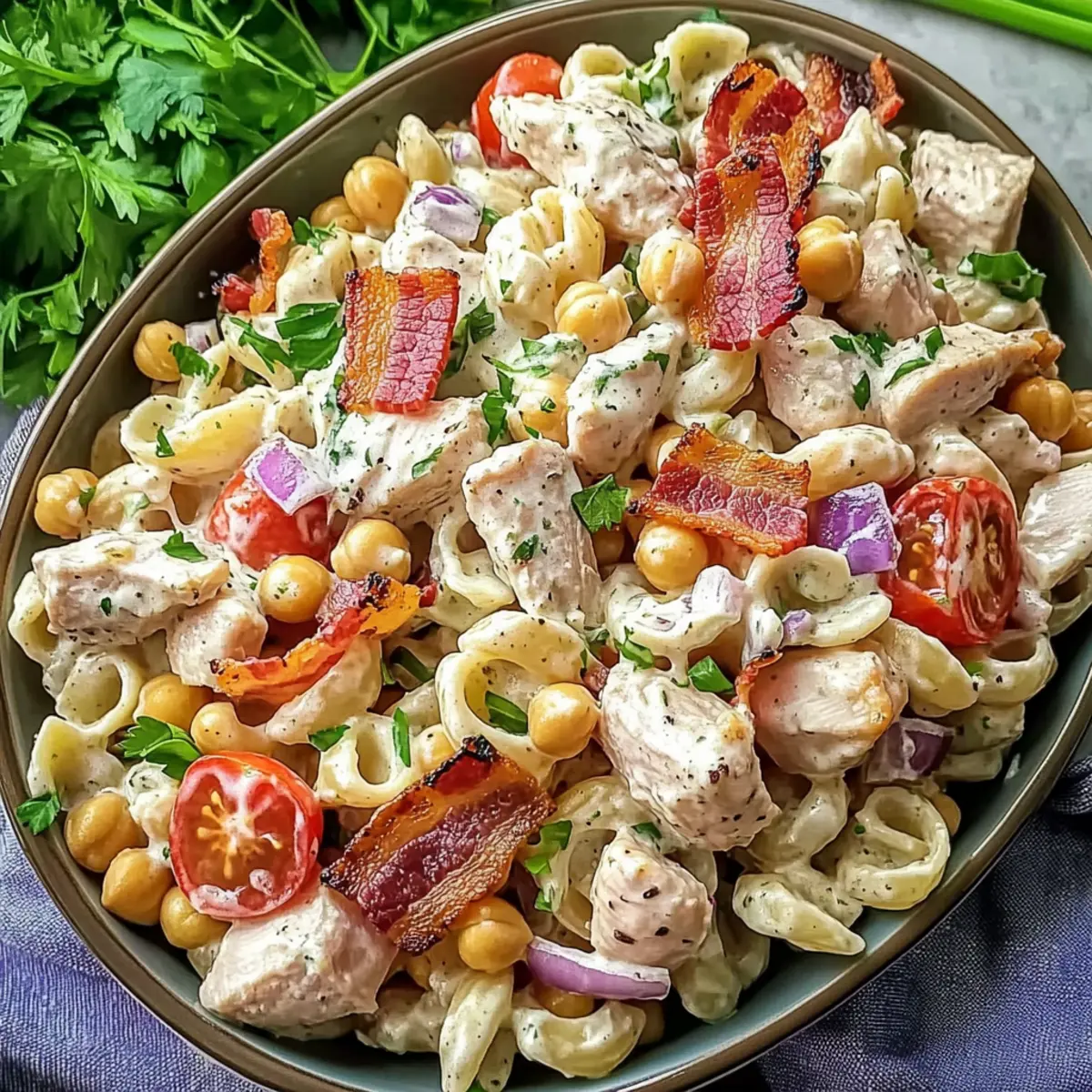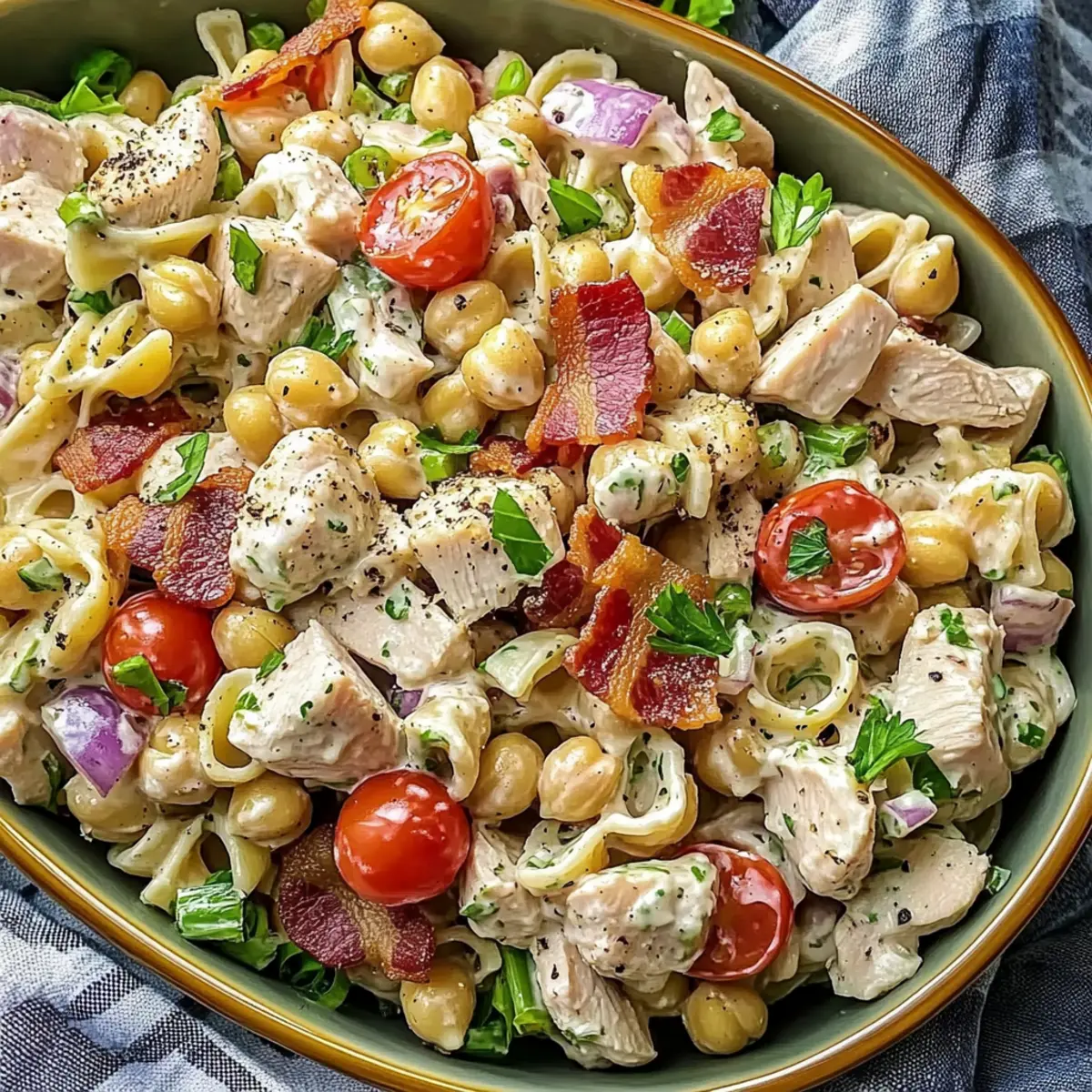As I dug through my pantry for lunch ideas, a mix of flavors and textures popped into my mind—just the right steps to create a wholesome dish that doesn’t skimp on satisfaction. That’s how my High Protein Bacon Ranch Pasta Salad came to life. Bursting with over 30 grams of protein per serving, it’s a filling option that keeps you fueled without weighing you down. The chickpea pasta adds a delightful bite while the crispy bacon intermingles with creamy ranch, making this dish a health-conscious crowd-pleaser for meal prep or family gatherings. And the best part? You can whip it up in no time! Ready to transform lunch into a tasty adventure? Let’s dive into this delicious recipe!