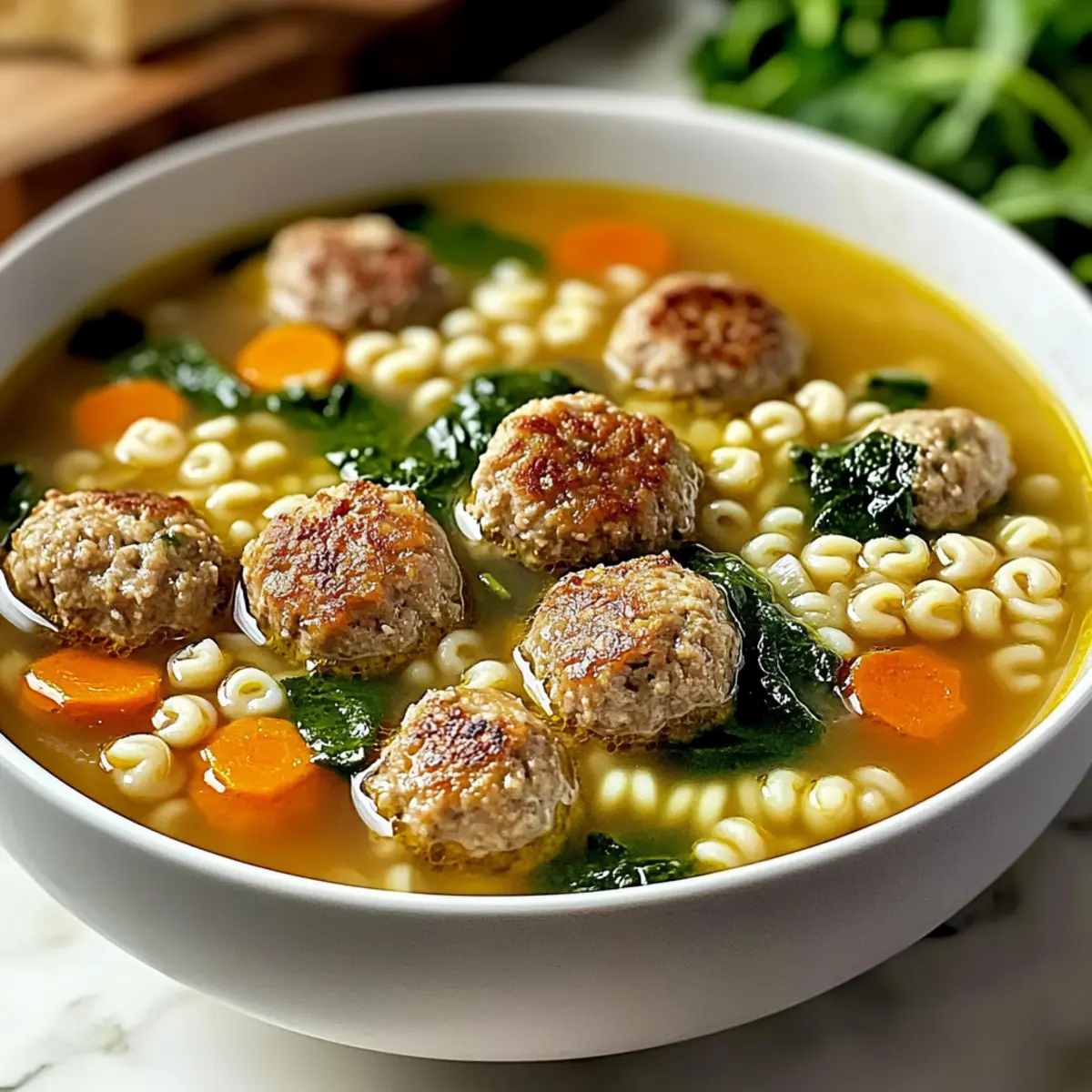 As the chill of autumn settles in, there’s something undeniably comforting about a warm bowl of soup that wraps you in a hug. Enter Italian Wedding Soup—a delightful medley of tender meatballs, vibrant greens, and rich broth that has quickly become one of my go-to recipes for cozy nights in. Not only is this dish a crowd-pleaser, perfect for family gatherings or a simple weeknight dinner, but it also offers a gluten-free option that allows everyone to enjoy it without worry. Plus, with its quick prep and heartfelt flavors, it proves that homemade meals can be both nourishing and easy to whip up. Curious about how to make this comforting classic? Let’s dive in!