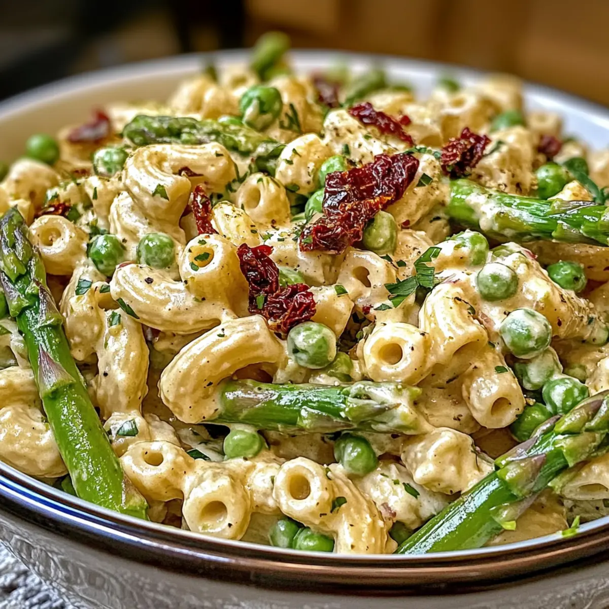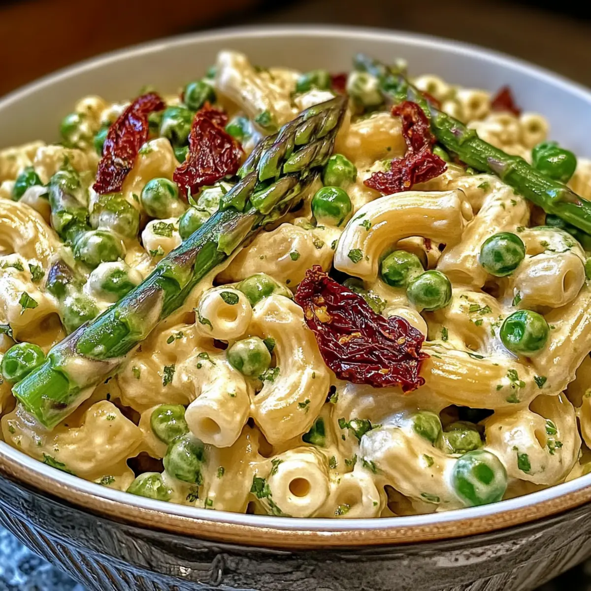 This Lemon-Dijon Asparagus and Pea Macaroni Salad is naturally vegan, but always double-check labels if you’re concerned about hidden ingredients in mayonnaise or pasta. As for allergies, be cautious with sun-dried tomatoes, as some brands may contain preservatives, and always ask your guests if they have any specific dietary restrictions!