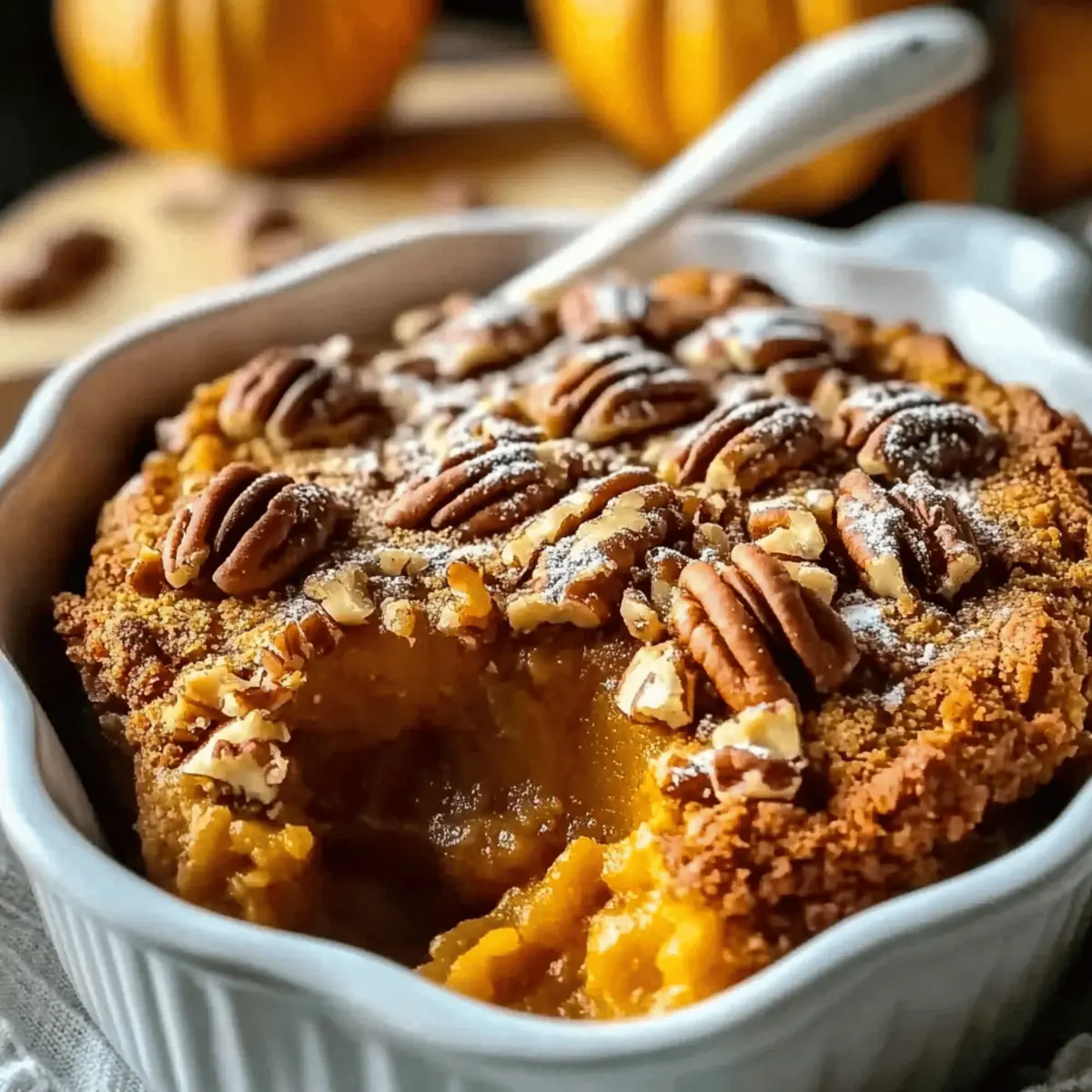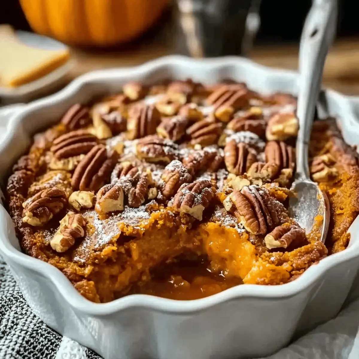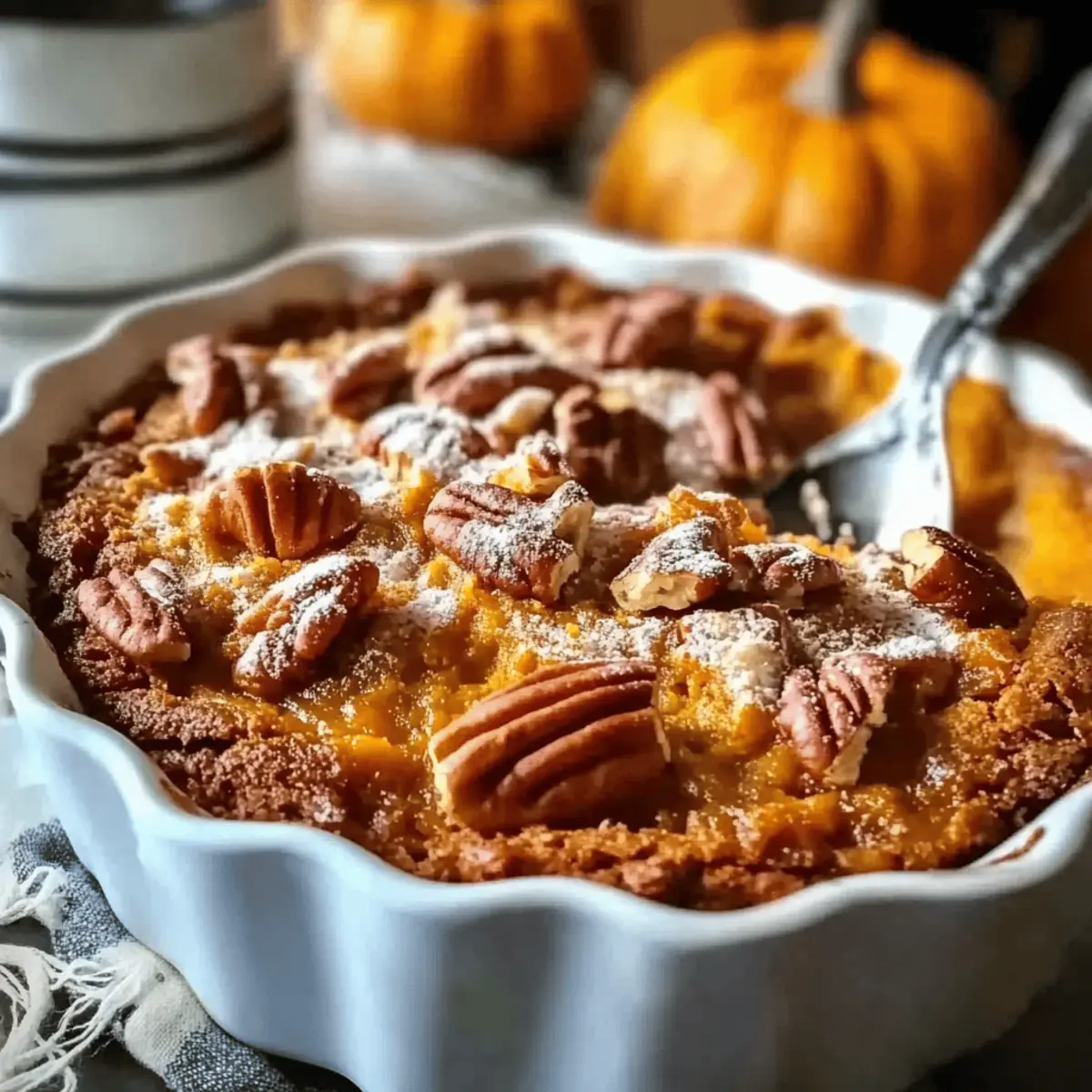 Pour the pumpkin filling into the greased baking dish, spreading it evenly across the bottom. Carefully sprinkle the crumbly pecan topping over the filling, making sure to cover it generously. This layering technique allows the flavors to meld and creates a beautiful contrast once baked.