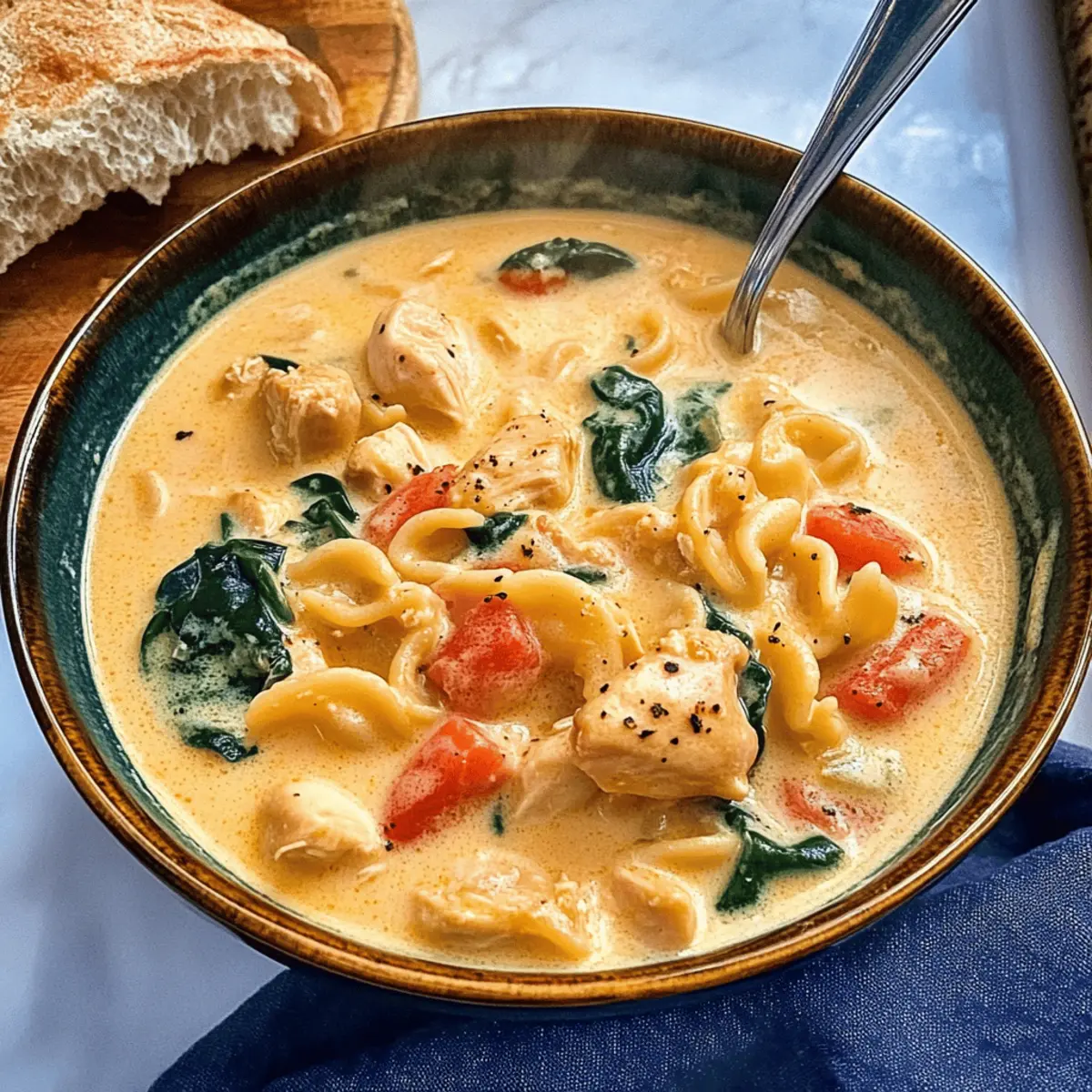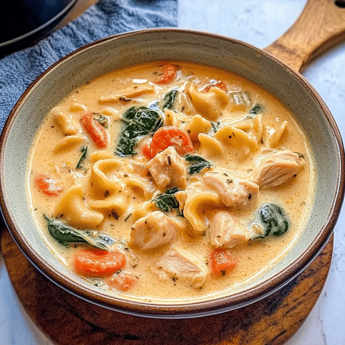 After the chicken is cooked and pasta is ready, stir in 1 cup of heavy whipping cream, 2½-3 cups of fresh spinach, and ½-1 cup of grated Parmesan cheese. Allow this to simmer for an additional 5 minutes until the spinach wilts and the cheese melts, creating a velvety finish. This final touch completes your comforting Marry Me Chicken Soup.