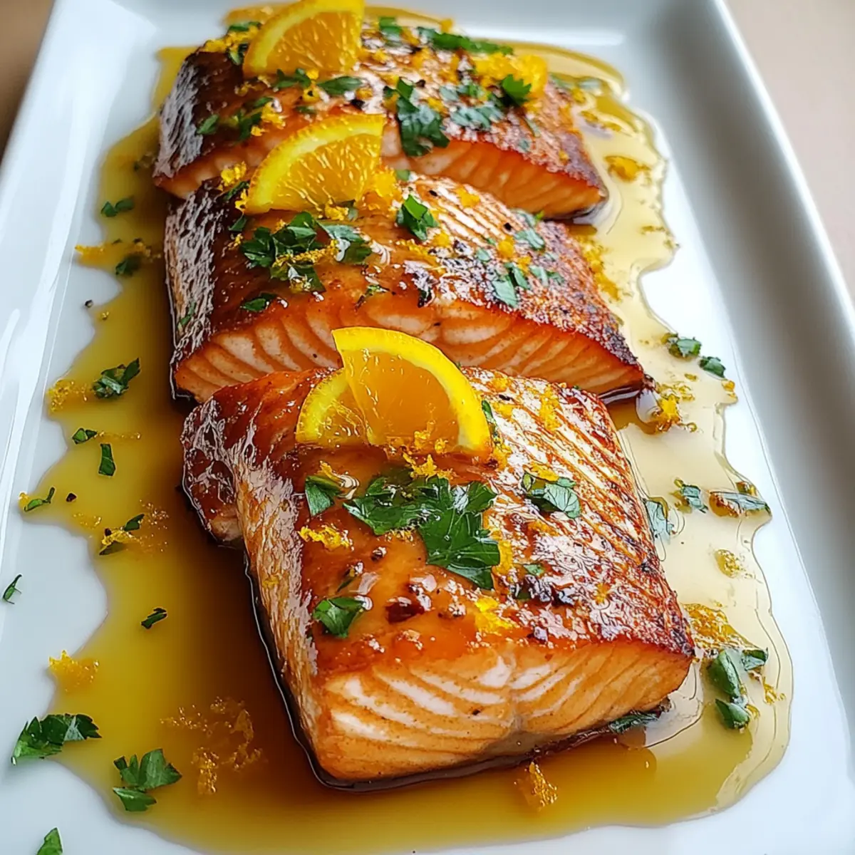 Crowd-Pleaser: Impress your family and guests alike; this Orange Glazed Salmon is a stunning centerpiece for any dinner table.