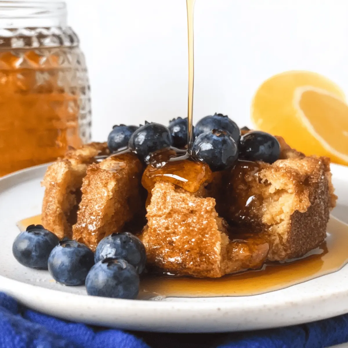 Maple Syrup Drizzle: A generous drizzle of pure maple syrup brings a classic sweetness that pairs perfectly with the French toast. It enhances the dish while adding a touch of warmth.