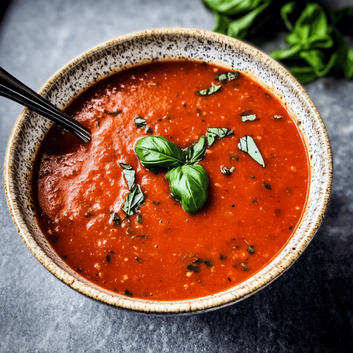 Irresistible flavor: The Homemade Roasted Tomato Basil Soup brings out the essence of sun-ripened tomatoes and fresh basil, making every spoonful a burst of summer delight.