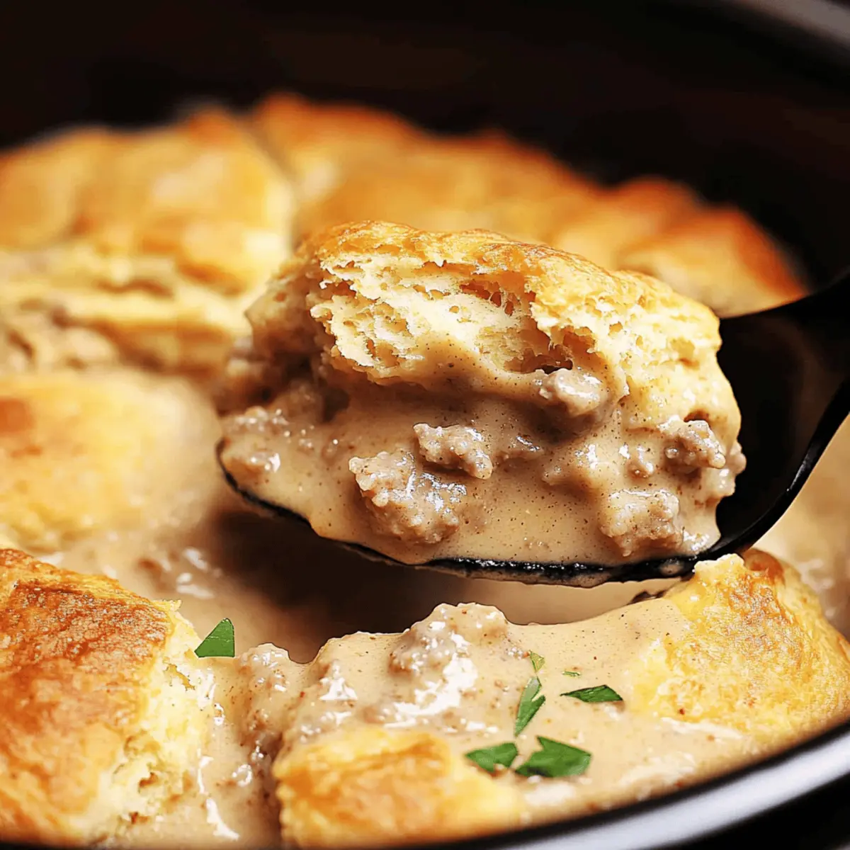As I stirred the savory gravy bubbling away in my slow cooker, a wave of nostalgia washed over me, reminiscent of cozy family breakfasts where laughter mingled with the aroma of hearty comfort food. This Slow Cooker Sausage Gravy Casserole is my go-to dish for lazy Sundays and festive brunches alike. What I adore most about this dish is how incredibly easy it is to whip up while still delivering that warm, satisfying experience. You’ll have golden, flaky biscuits resting in a rich, creamy sauce, with the added flexibility to customize the flavors with various sausage options—from spicy to vegetarian. It’s a true crowd-pleaser that brings everyone together at the table, and a fantastic way to kickstart your day. Ready to dive into a comforting bowl of goodness that’s sure to chase those fast-food cravings away? Let’s get cooking!