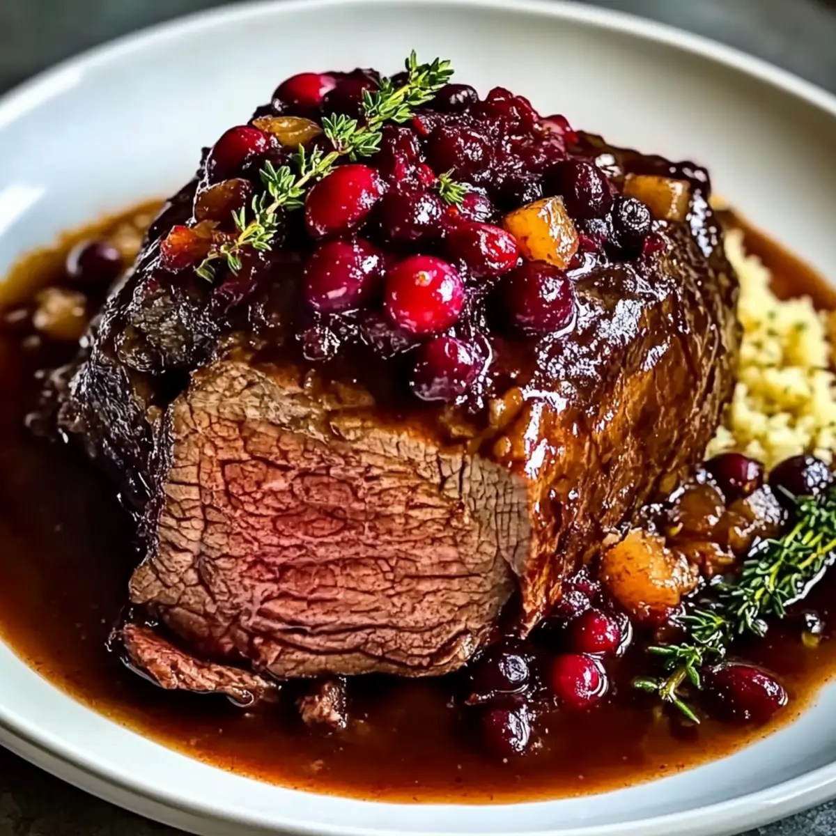Comforting, Hearty Meal: This Slow-Braised Beef Roast with Cranberry Balsamic Glaze is perfect for chilly evenings, offering warmth and satisfaction. Effortless Elegance: With minimal prep time, you’ll impress your guests without breaking a sweat. Flavor Harmony: The tart-sweet glaze elevates the richness of the beef, creating memorable bites. Perfect for Gatherings: This dish shines as a holiday centerpiece, inviting everyone to linger at the table. Embrace the joy of homemade goodness—pair it with creamy mashed potatoes or roasted vegetables for a complete experience.