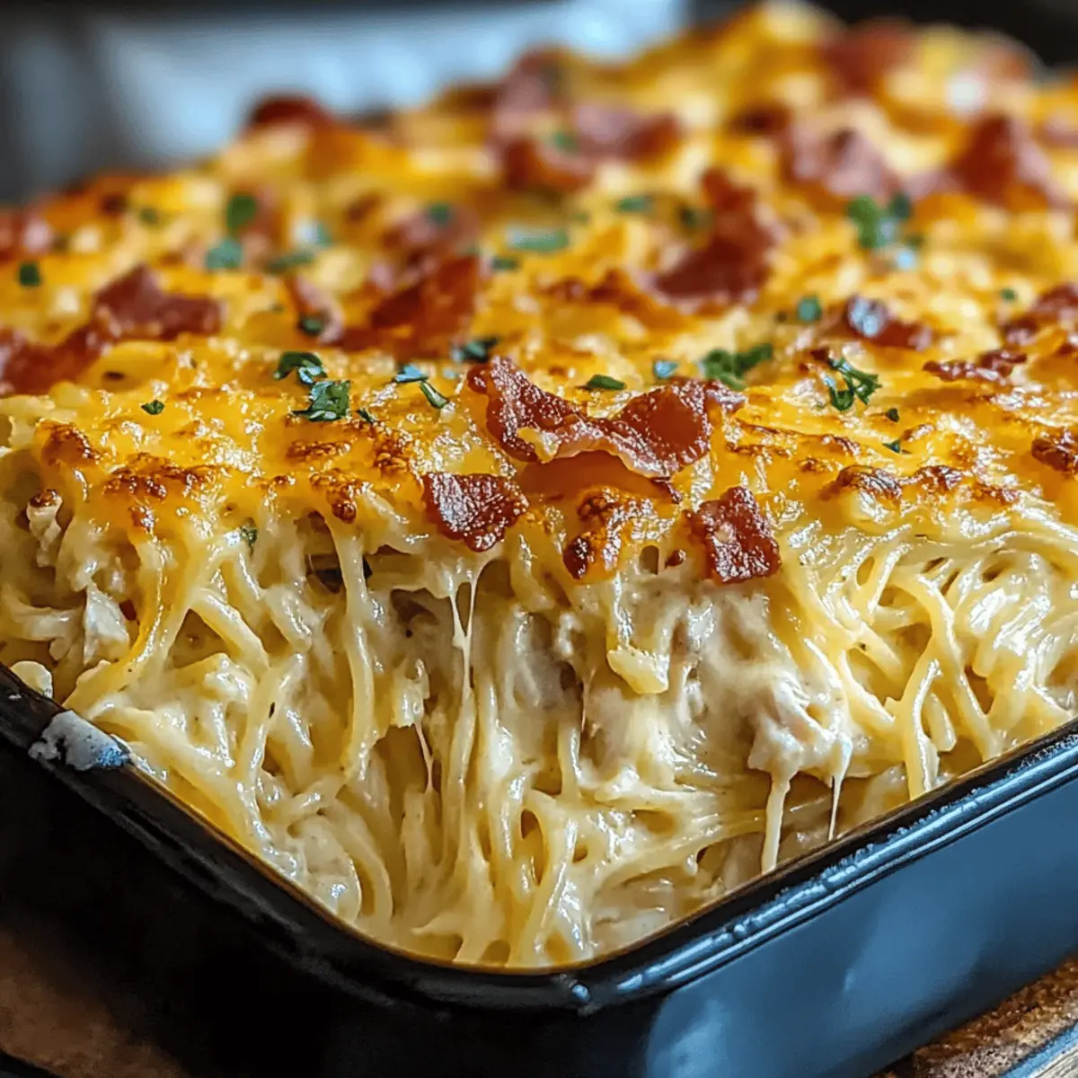 As I stirred the bubbling sauce, the aroma of creamy ranch mingled with tender chicken and crispy bacon filled the kitchen, transporting me to my grandma’s warm dining room in the South. This Creamy Southern Spaghetti Bake perfectly captures the essence of comfort food, transforming simple ingredients into a dish that brings people together. Not only is it potluck-friendly, making it an instant crowd-pleaser, but it also shines on busy weeknights when time is tight. Imagine indulging in layers of velvety sauce and al dente pasta, each bite a cozy hug of flavor. It’s the kind of meal that becomes a staple in your home, leaving everyone asking for seconds. Are you ready to embrace the warmth of this delicious casserole and start a new family tradition?