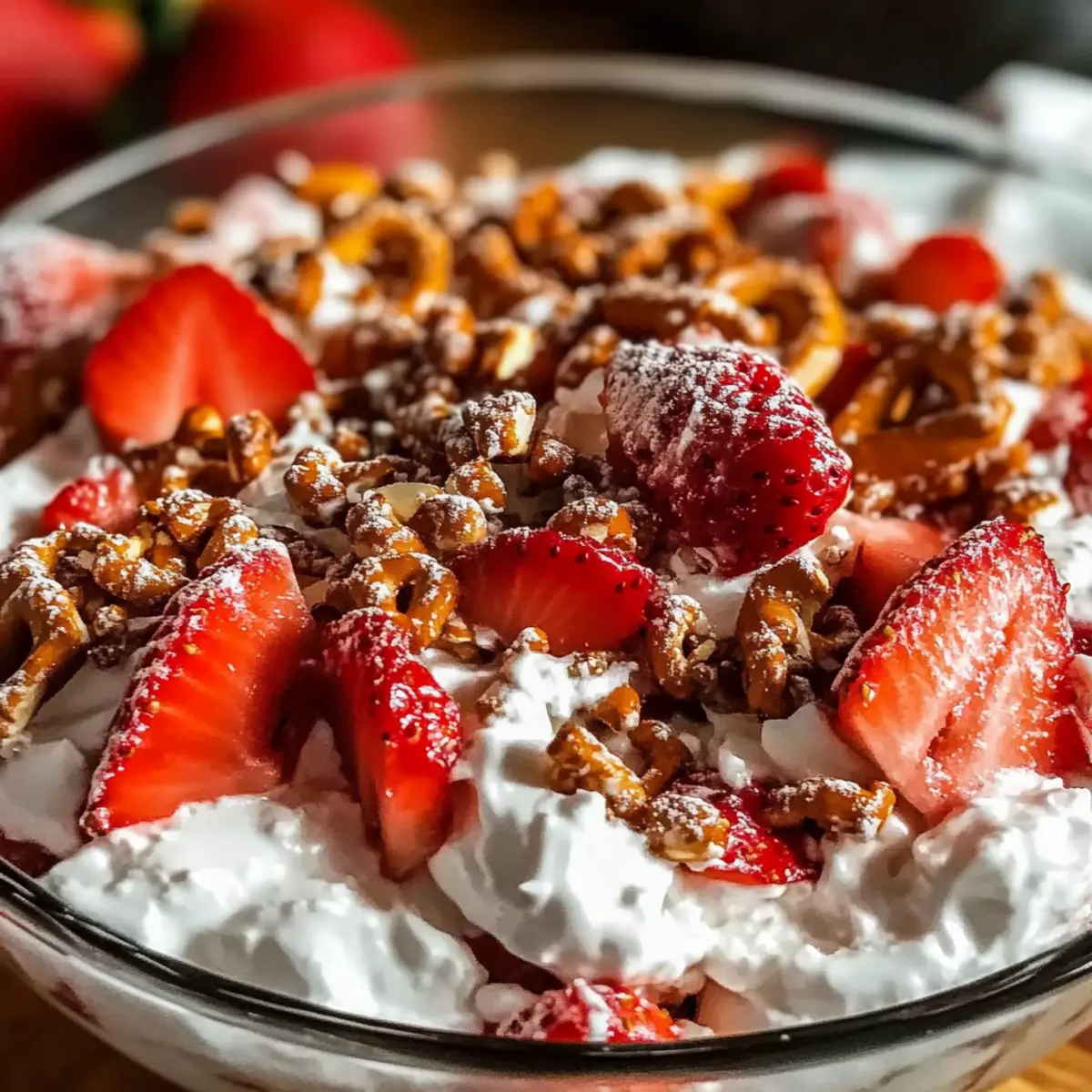 These Strawberry Crackle Salad preparations are perfect for busy home cooks looking to save time! You can prepare the pretzel crunch up to 3 days in advance, ensuring a deliciously crunchy base. Simply store the cooled pretzel mixture in an airtight container at room temperature to maintain its crunchiness. For the creamy filling, you can mix the cream cheese, sugar, and vanilla the day before and refrigerate it separately. Just before you’re ready to serve, fold in the sliced strawberries and the pretzel crunch for that fresh, delightful experience. Trust me, when you prep ahead, this no-bake dessert will be just as delicious!
