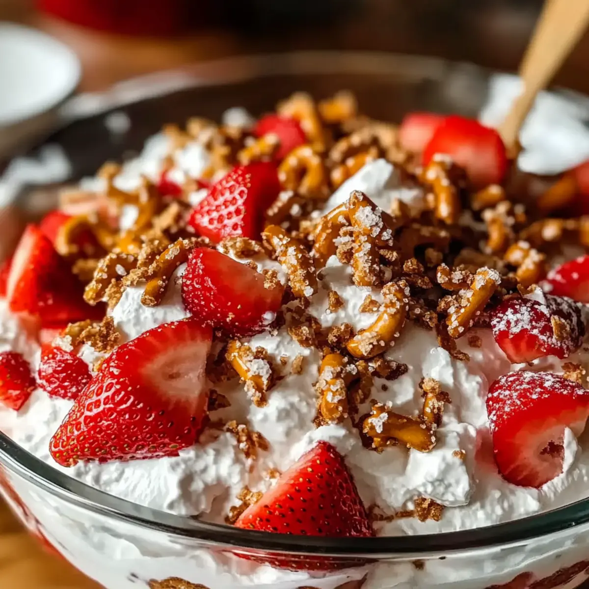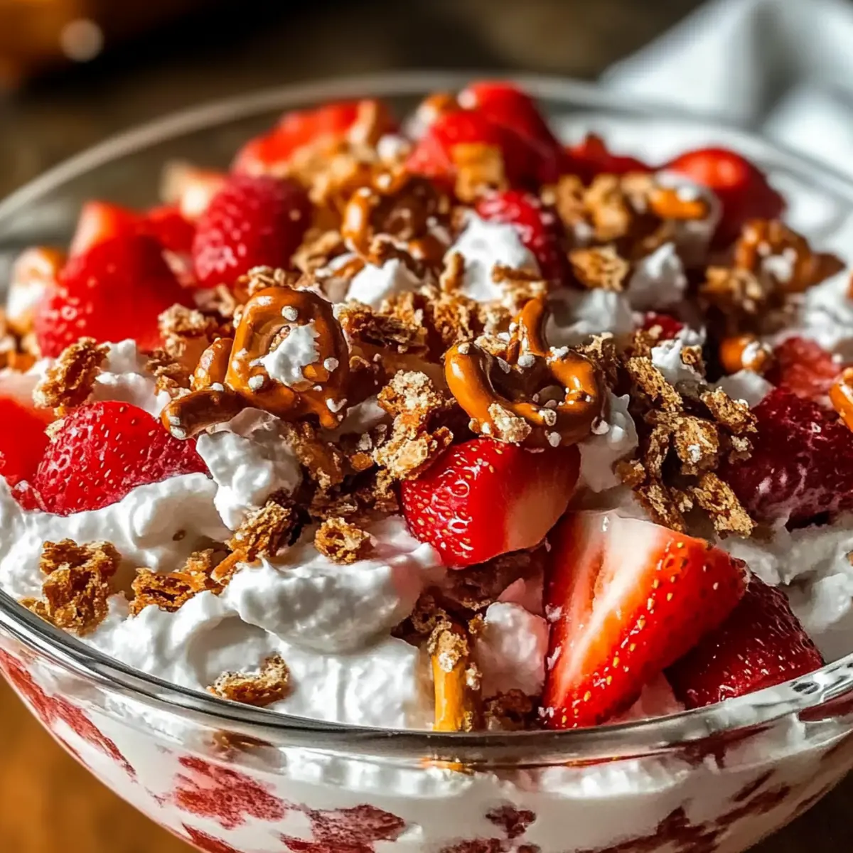 Reheating: If you’ve frozen the pretzel crunch, allow it to thaw at room temperature before serving. Recrisp it in the oven at 350°F (175°C) for a few minutes if you desire that original crunch in your Strawberry Crackle Salad.