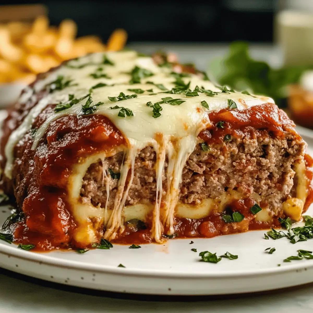 Once baked, remove the Stuffed Italian Meatloaf from the oven and let it rest for about 10 minutes. This resting period allows the juices to redistribute, making slicing easier. After resting, slice and serve with extra marinara sauce, alongside mashed potatoes, roasted vegetables, or a fresh salad for a complete meal.